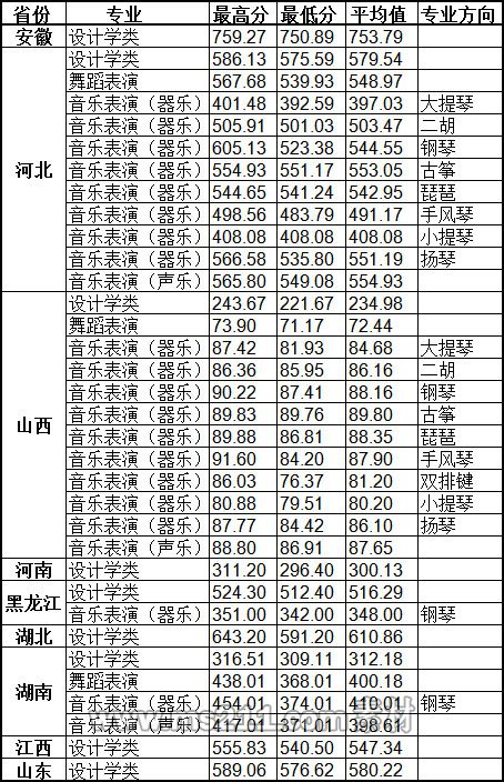 2、對于實(shí)行平行志愿投檔的省份,我校設(shè)計(jì)學(xué)類、音樂表演和舞蹈表演專業(yè)執(zhí)行各省平行志愿投檔規(guī)則,對進(jìn)檔考生按各省投檔規(guī)則計(jì)算的成績從高到低依次錄取。若成績相同,依次比較高考文化總成績、語文成績、數(shù)學(xué)成績、外語成績。