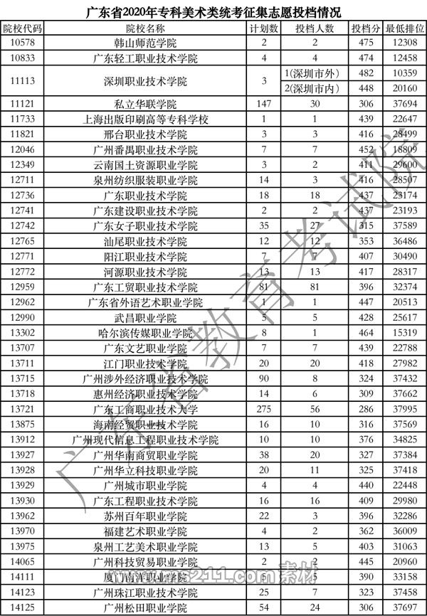 相關(guān)熱詞搜索:廣東省 / 專(zhuān)科 / 美術(shù)類(lèi) / 統(tǒng)考 / 征集志愿 / 投檔分?jǐn)?shù)線