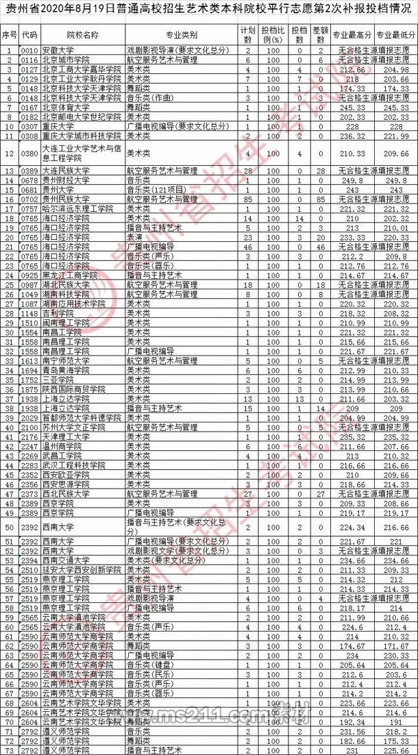 相關(guān)熱詞搜索:貴州省 / 藝術(shù)類本科院校 / 平行志愿 / 第2次補報 / 投檔分數(shù)線