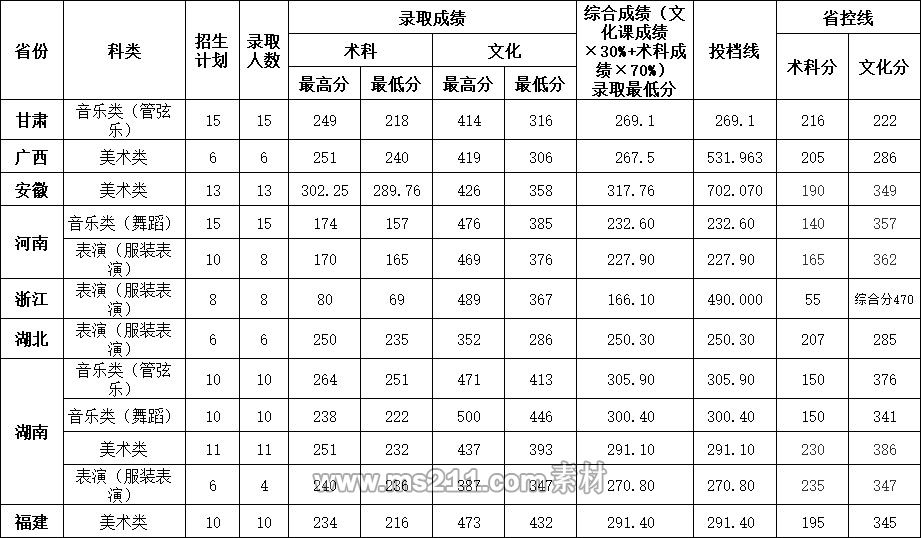 惠州學院2020年省外藝術類本科專業(yè)錄取分數(shù)線