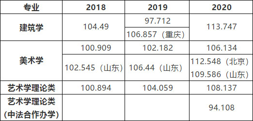 下表是近三年建筑學、美術學、藝術學理論類和藝術學理論類(中法合作辦學)專業(yè)錄取文化課相對成績分數(shù)線: