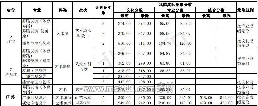 使用省級統(tǒng)考(聯(lián)考)成績的藝術(shù)專業(yè):1.對于有統(tǒng)一投檔原則的省(區(qū)、市)),認可相關(guān)省(區(qū)、市)投檔原則投檔,在文化和專業(yè)都合格的投檔考生中,按照投檔成績由高到低錄取,不設(shè)專業(yè)級差,無單科要求。2.對于沒有統(tǒng)一投檔原則的省(區(qū)、市),播音與主持藝術(shù)、廣播電視編導(dǎo)專業(yè)在文化和專業(yè)都合格的考生中,按照高考文化成績從高分到低分投檔,對于投檔考生,按照高考文化成績由高到低錄取;舞蹈學(xué)、視覺傳達藝術(shù)專業(yè)在文化和專業(yè)都合格的考生中,按照專業(yè)成績從高分到低分投檔,對于投檔考生,按照專業(yè)成績由高到低錄取,不設(shè)專業(yè)級差,無單科要求。