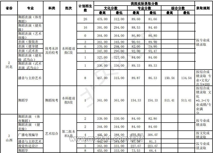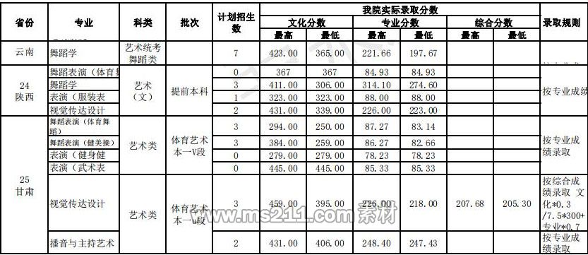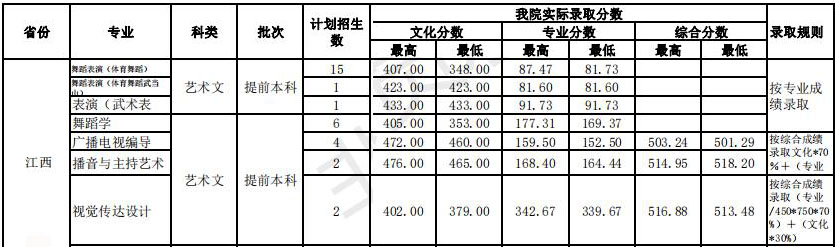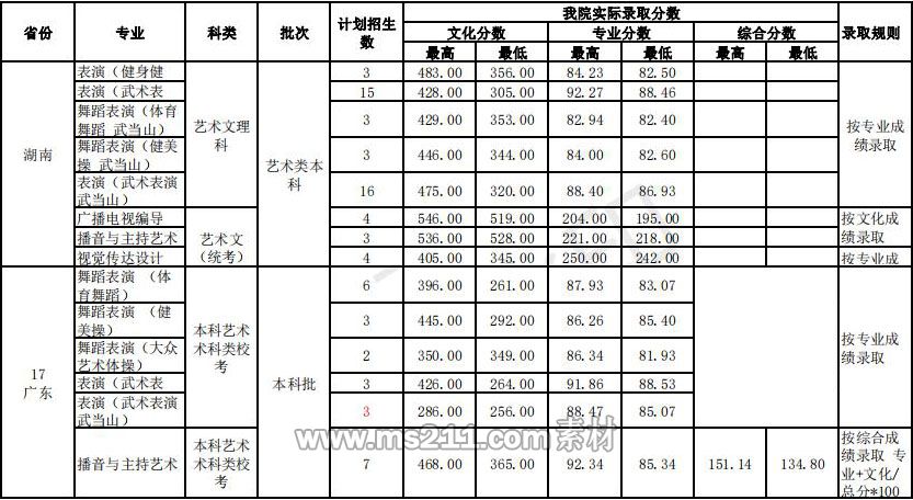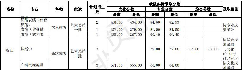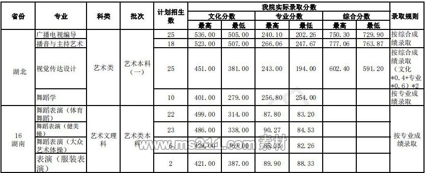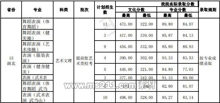 武漢體育學(xué)院藝術(shù)類本科錄取分數(shù)線