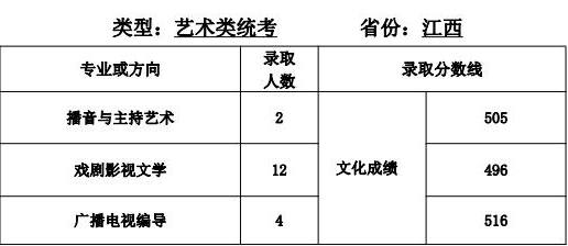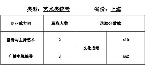 2.播音與主持藝術(shù)、攝影、廣播電視編導(dǎo)、戲劇影視文學(xué):專業(yè)省級統(tǒng)聯(lián)考成績和高考成績均須達(dá)到所在省(區(qū)、市)劃定的藝術(shù)類本科專業(yè)錄取控制分?jǐn)?shù)線。根據(jù)考生所在省、區(qū)、市)公布的招生計(jì)劃,按高考文化成績擇優(yōu)錄取。