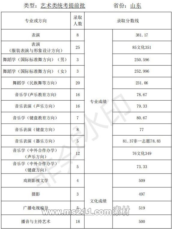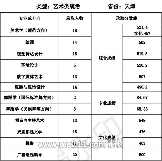 2021年天津師范大學(xué)藝術(shù)類本科專業(yè)錄取分?jǐn)?shù)線