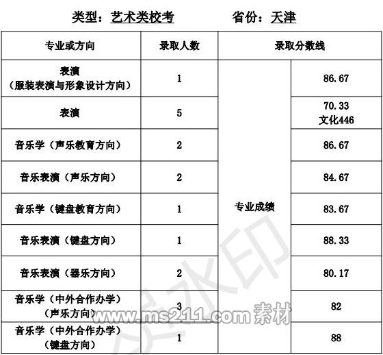 4.表演專業(yè)錄取規(guī)則:考生高考成績須達(dá)到天津市劃定的藝術(shù)類本科專業(yè)錄取控制分?jǐn)?shù)線,專業(yè)考試成績合格,根據(jù)天津市公布的招生計(jì)劃,按天津音樂學(xué)院表演專業(yè)成績擇優(yōu)錄取。