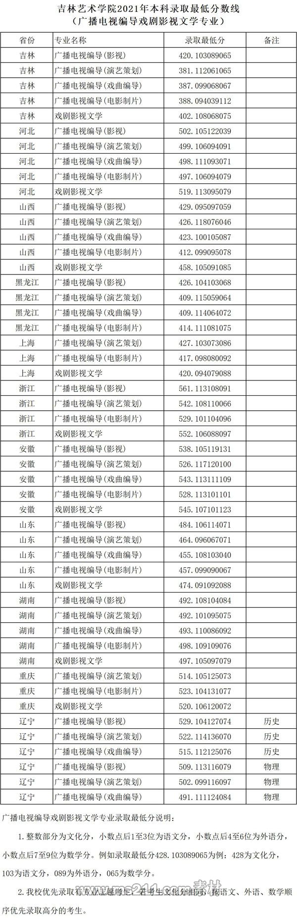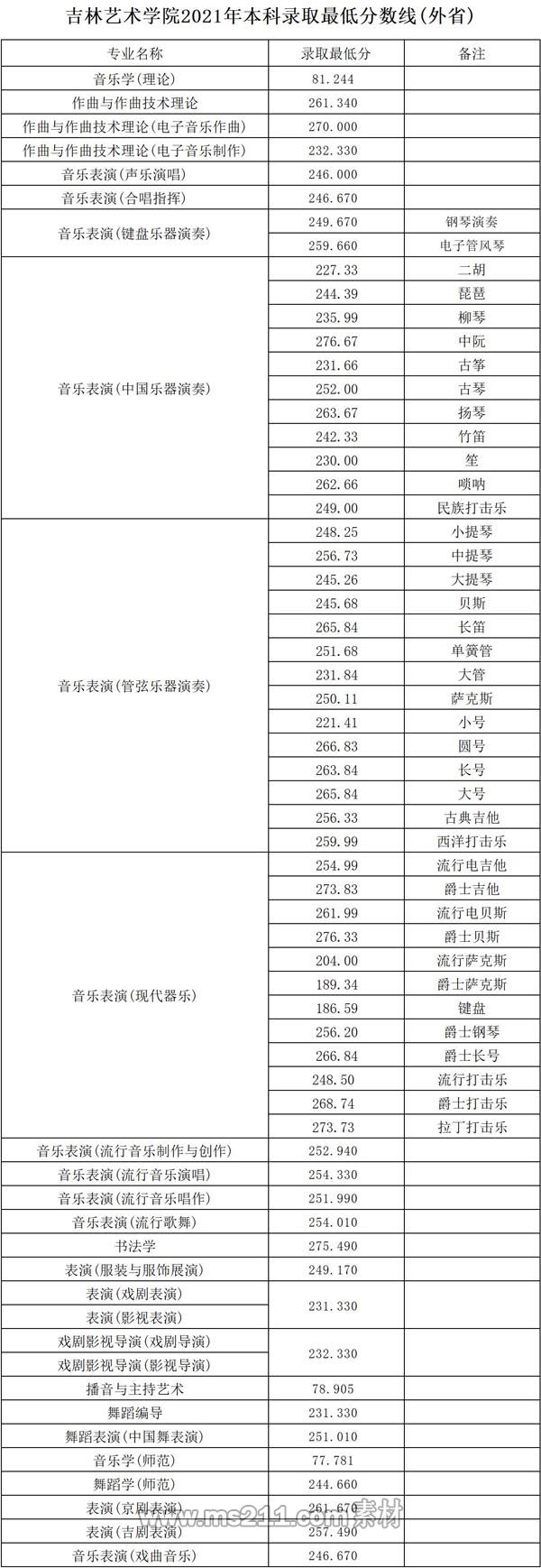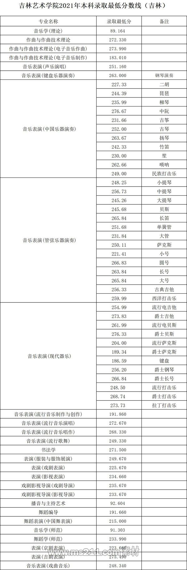 2021年吉林藝術(shù)學(xué)院本科專業(yè)錄取分?jǐn)?shù)線