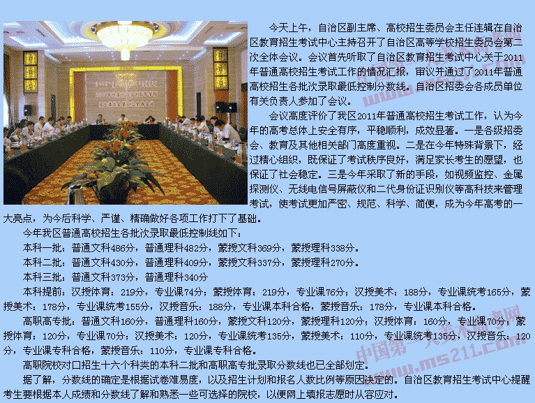 2011年內(nèi)蒙古普通高校招生各批次各科類錄取最低控制線確定