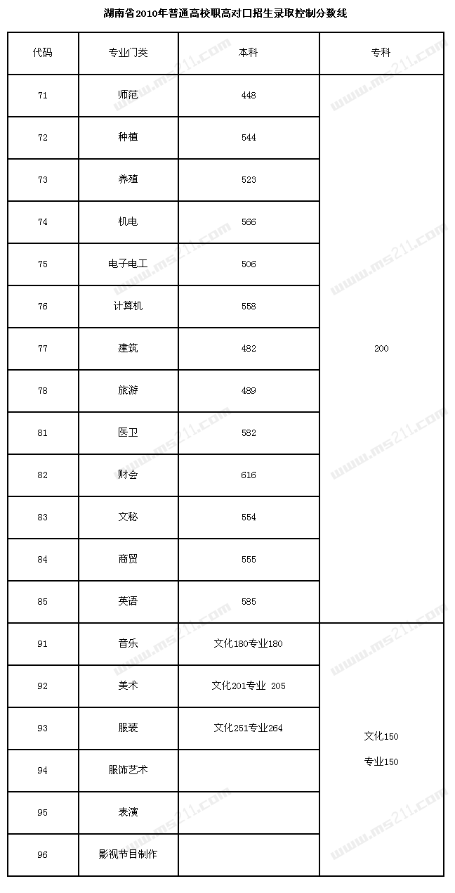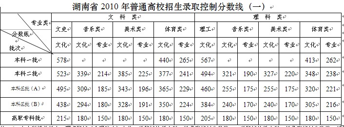 2010年湖南高考錄取分數(shù)線(含美術(shù))