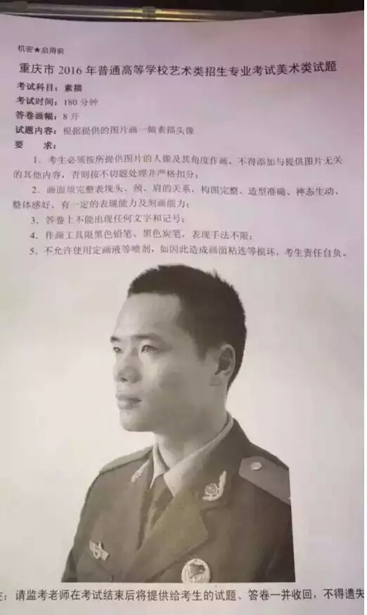 素描考題:男青年官兵頭像照片模擬寫生(如下圖)
