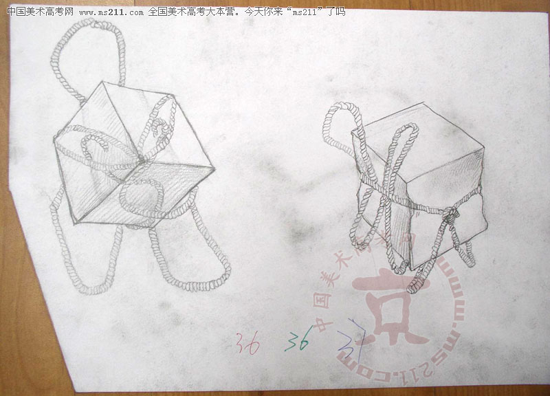 2003年北京服裝學(xué)院美術(shù)高考優(yōu)秀試卷(第1套創(chuàng)意速寫:繩子捆綁正方體)2007102920