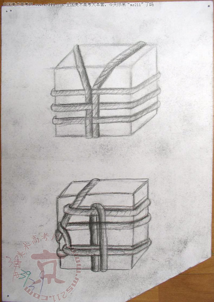 2003年北京服裝學(xué)院美術(shù)高考優(yōu)秀試卷(第1套創(chuàng)意速寫(xiě):繩子捆綁正方體)2007102927