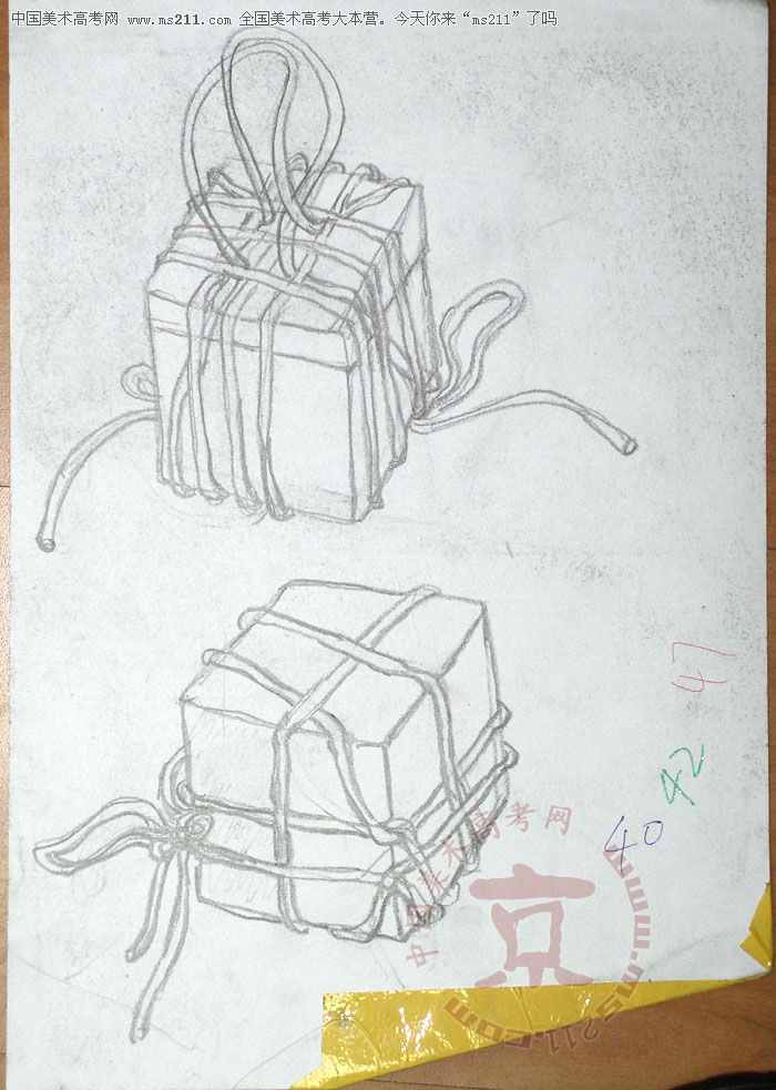 2003年北京服裝學(xué)院美術(shù)高考優(yōu)秀試卷(第1套創(chuàng)意速寫:繩子捆綁正方體)2007102931