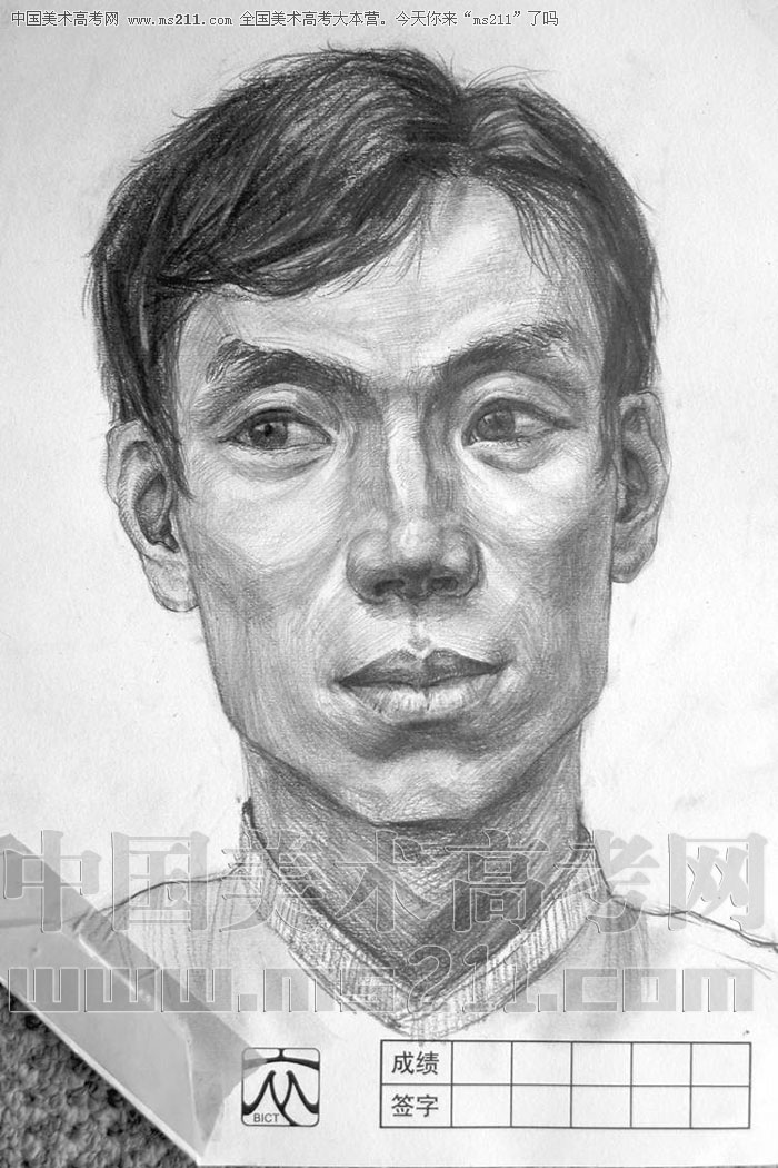 2004年北京服裝學(xué)院美術(shù)高考優(yōu)秀試卷(第1套素描默寫(xiě):正面男青年)2007110313