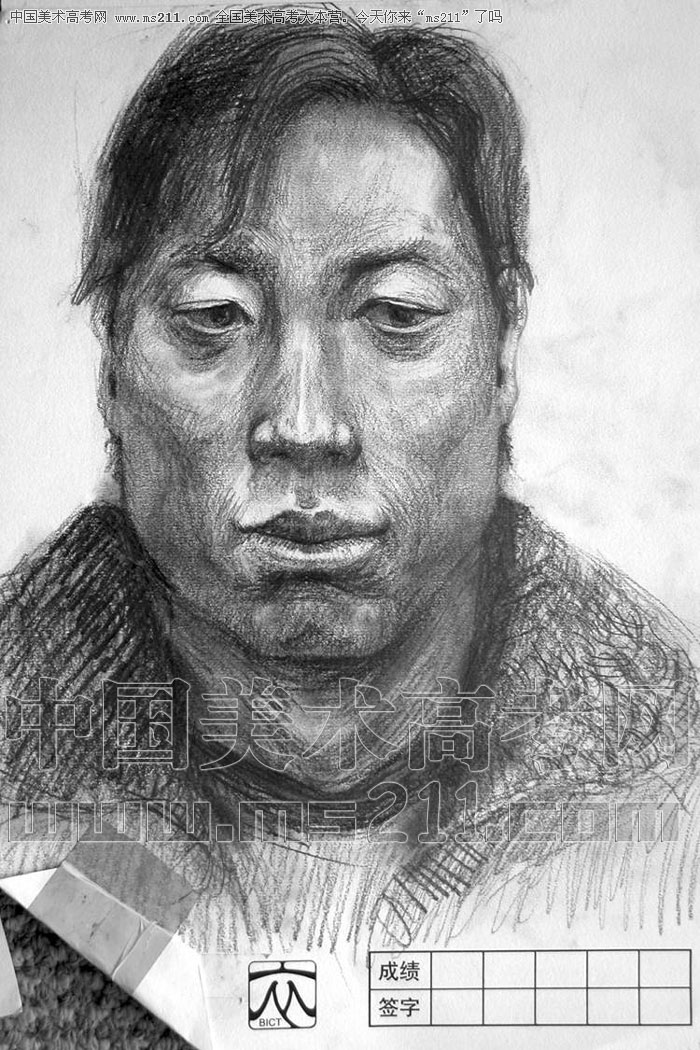 2004年北京服裝學(xué)院美術(shù)高考優(yōu)秀試卷(第1套素描默寫(xiě):正面男青年)2007110316