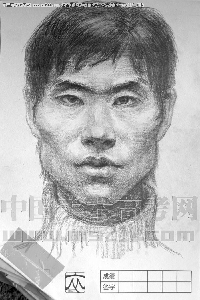 2004年北京服裝學院美術高考優(yōu)秀試卷(第1套素描默寫:正面男青年)2007110319