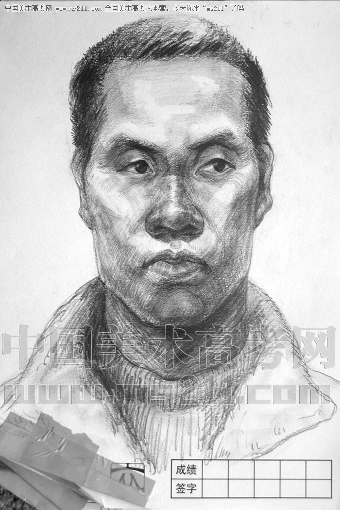 2004年北京服裝學(xué)院美術(shù)高考優(yōu)秀試卷(第1套素描默寫:正面男青年)2007110330