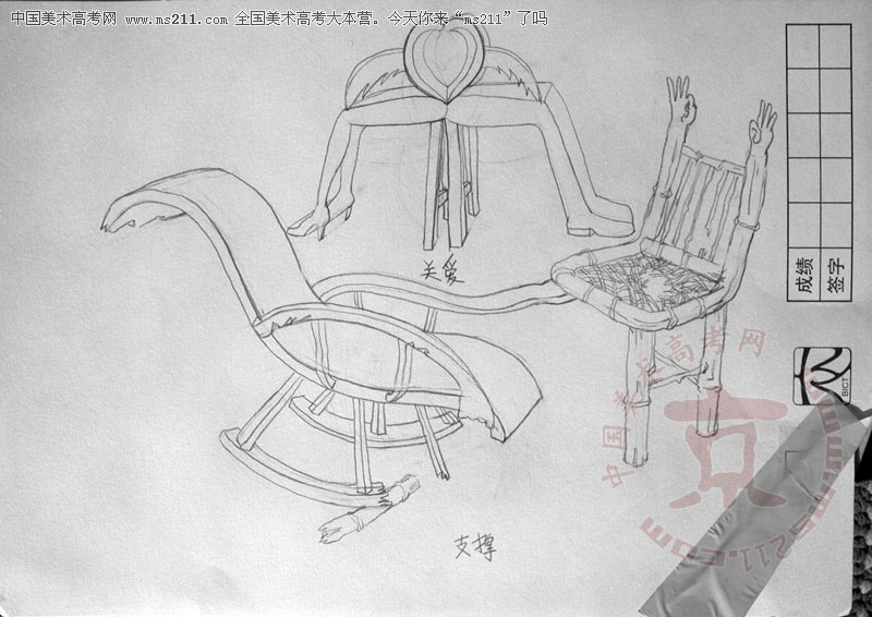 2004年北京服裝學(xué)院美術(shù)高考優(yōu)秀試卷(第2套創(chuàng)意速寫:椅子的聯(lián)想)2007110406