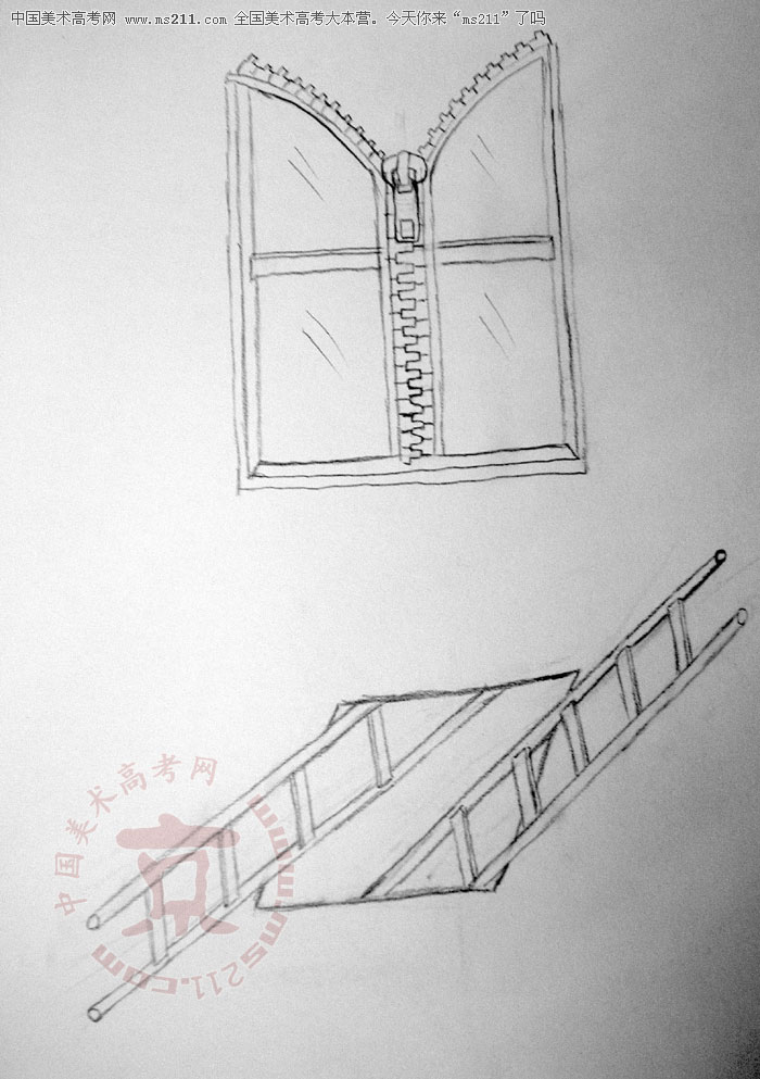 2004年北京服裝學(xué)院美術(shù)高考優(yōu)秀試卷(第4套創(chuàng)意速寫:門、梯、窗的聯(lián)想,任選兩個(gè))2007110614