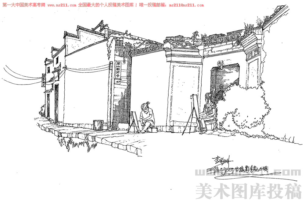 中國美術(shù)學院繼續(xù)教育學院環(huán)境藝術(shù)設(shè)計教師,李彤洲,風景速寫美術(shù)高考投稿作品2012121825