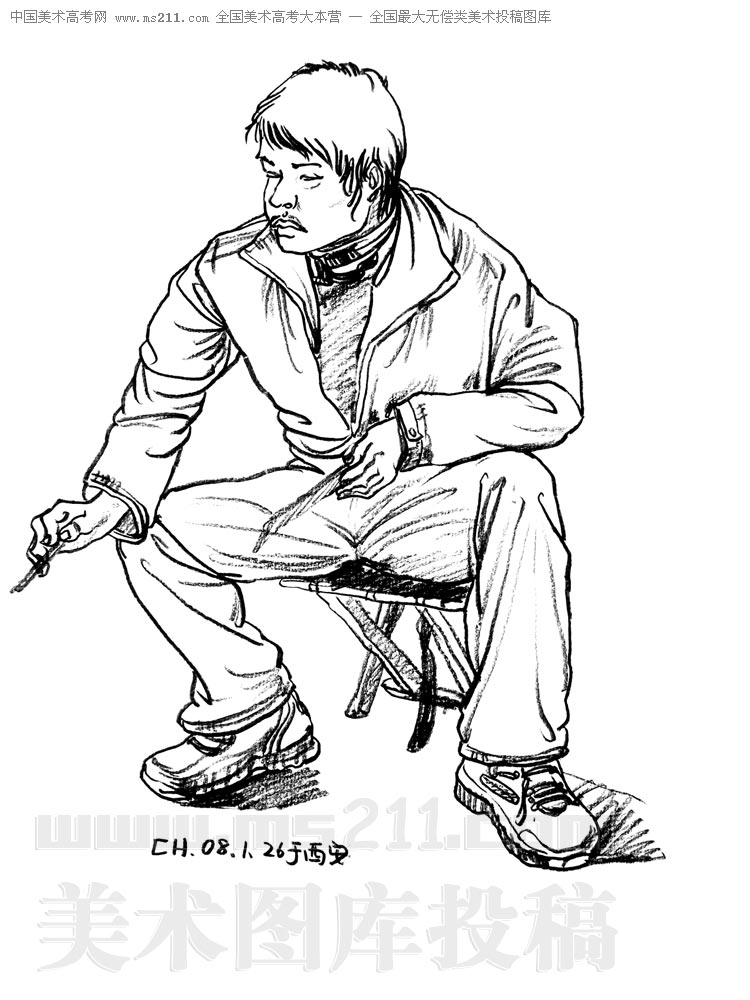 西安美術(shù)學(xué)院2004級裝飾藝術(shù)系現(xiàn)代實(shí)用工作室,陳宏,人物速寫美術(shù)高考投稿作品2008041305