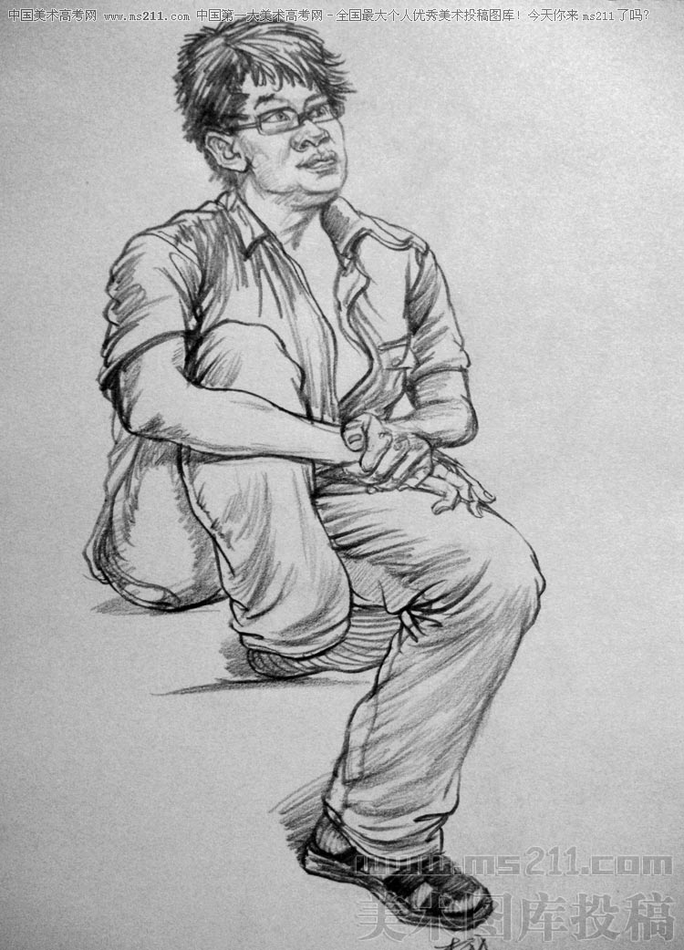 西安美術學院裝飾系2004級,李明,人物速寫美術高考投稿作品2010121066