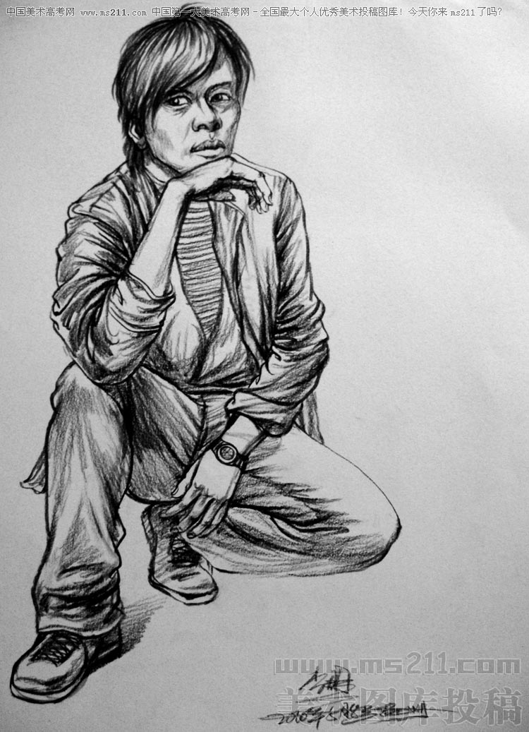 西安美術(shù)學(xué)院裝飾系2004級(jí),李明,人物速寫美術(shù)高考投稿作品2010121084