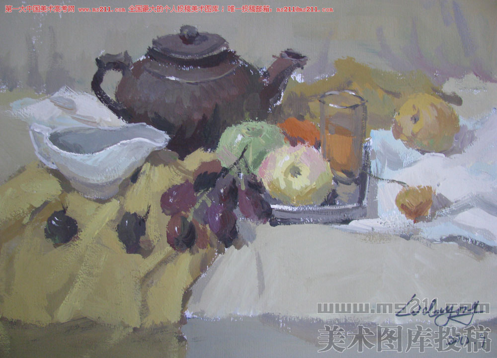 山東棗莊十六中老師,李大勇,水粉靜物美術(shù)高考投稿作品2012111610