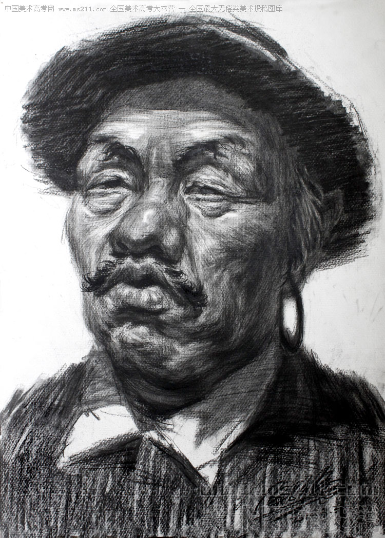廣州美術(shù)學(xué)院染織系2006級(jí),關(guān)子福,素描頭像美術(shù)高考投稿作品2010032304