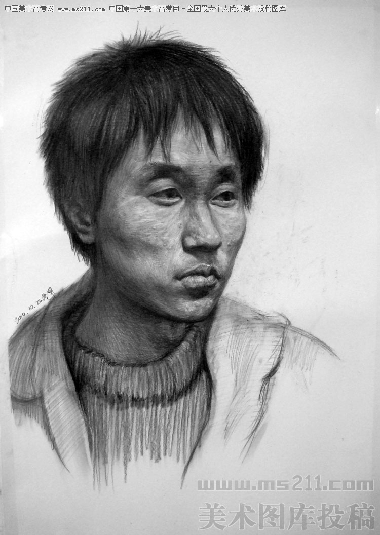 天津美術(shù)學(xué)院視覺傳達(dá)2007級,高登甲,素描頭像美術(shù)高考投稿作品2011012109