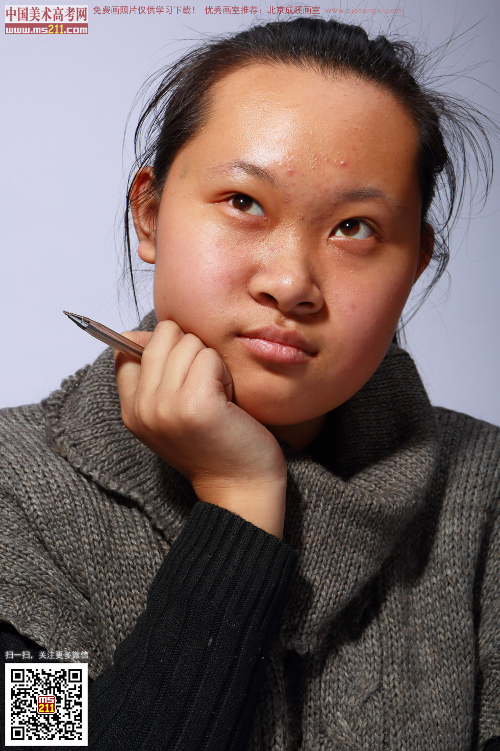 頭像帶手_女青年_美術高考網免費畫照片2014020229