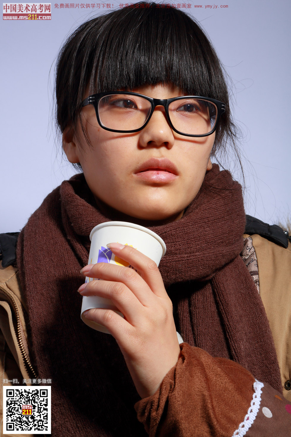 頭像帶手_女青年_美術高考網免費畫照片20140402127