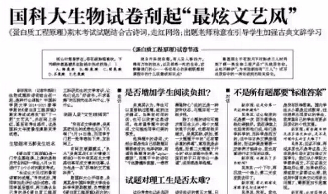 “長這么大見過的最有詩意的試題。”考完試后,周同學如此評價這份試卷。李同學甚至慨嘆,再三確認自己考的是《蛋白質(zhì)工程原理》,而不是文學。