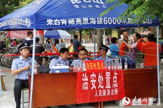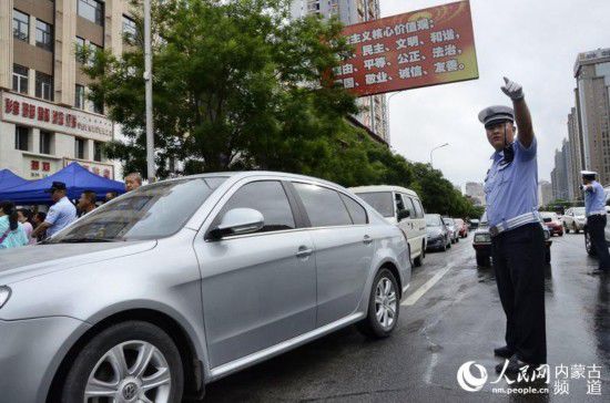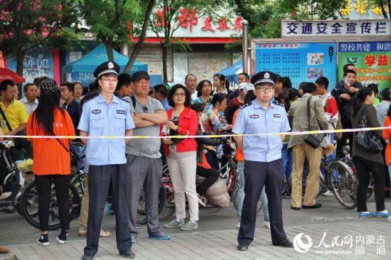 呼和浩特賽罕區(qū)十八中考點(diǎn)周?chē)鹆司渚€(xiàn)維持秩序