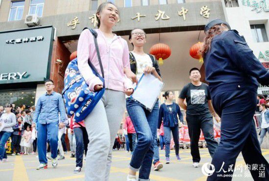 人民網(wǎng)呼和浩特6月7日電(曾曉強(qiáng) 王慧 實(shí)習(xí)生 李睿) 6月7日,呼和浩特市十八中、十九中的學(xué)生在老師和家長(zhǎng)們的鼓勵(lì)下有序走進(jìn)考場(chǎng)。