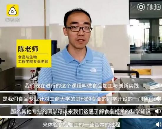 據(jù)浙江工商大學(xué)食品與生物工程學(xué)院專業(yè)陳老師介紹,這門(mén)課是針對(duì)食品專業(yè)以外的同學(xué)開(kāi)設(shè)的一門(mén)通識(shí)課,可以讓其他專業(yè)的同學(xué)們體驗(yàn)食品加工的基本過(guò)程。
