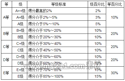 高職高專教師創(chuàng)新能力,使用A++、A+、A、B+、B、C+、C、D+、D、E+、E,共5等11級表示。等級標準說明如下(跨級別時,依照四舍五入規(guī)則計算等級):