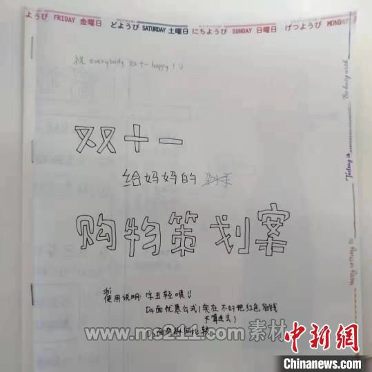 “分析性價比,計算優(yōu)惠率。祝你雙十一,購物很開心。”除了省錢攻略,學生葉天洋還為媽媽作了一首“避雷”打油詩,希望她能理性購物,不要被商家的套路所迷惑。