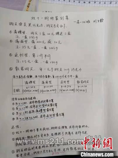 圖為高中生用數(shù)學思維幫助媽媽購物節(jié)“避雷” 武鋼三中供圖