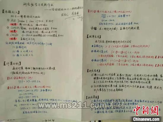 記者11日看到,學生們提交的作業(yè)圖文并茂,包括話題引入、計算分析、規(guī)律總結(jié)、研究思考,表格、文字、計算流程,一目了然。