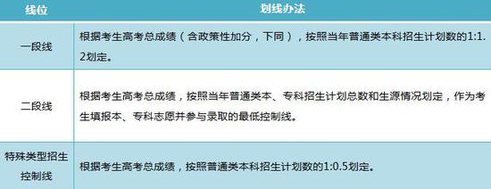 答:(1)普通類實行分段劃線、分段填報志愿、分段錄取的辦法。具體劃線辦法為: