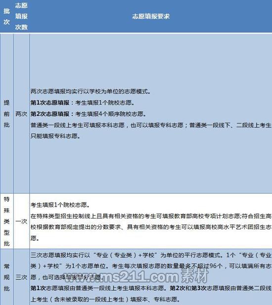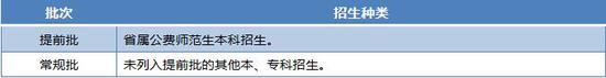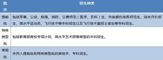 (1)普通類。分為提前批、特殊類型批和常規(guī)批三個錄取批次,錄取工作按三個批次依次進(jìn)行。