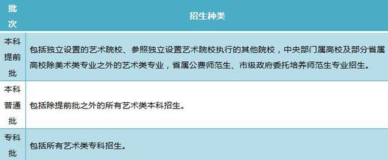 ?。?)藝術(shù)類。分為提前批、本科批和??婆齻€錄取批次,錄取工作按三個批次依次進(jìn)行。