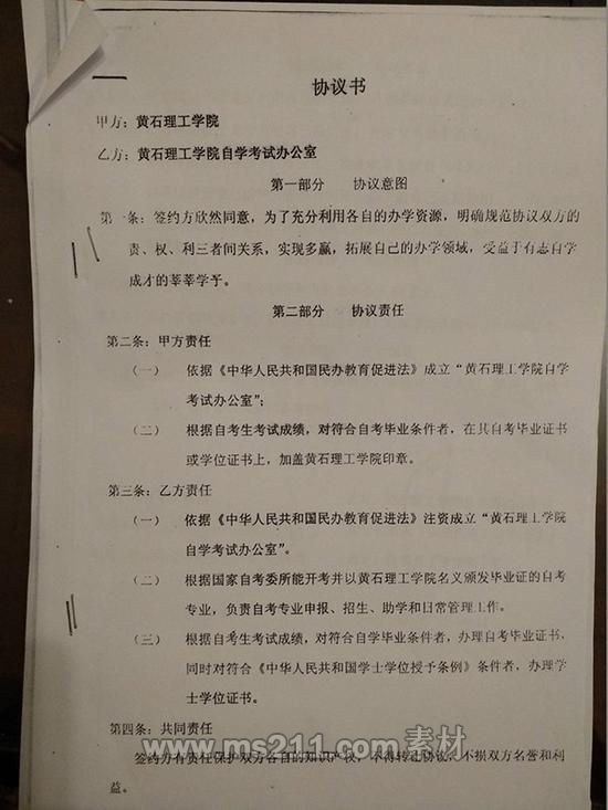 2005年,自考辦與黃石理工學院簽訂的協(xié)議書。2005年,自考辦與黃石理工學院簽訂的協(xié)議書。