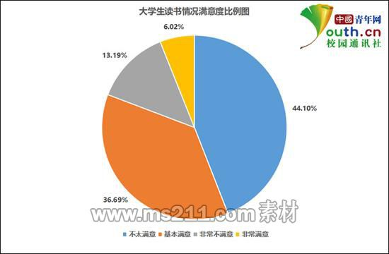 調(diào)查顯示,有44.1%的受訪學生對自己讀書情況不太滿意,36.69%的受訪學生基本滿意,認為非常不滿意和非常滿意的分別為13.19%和6.02%。