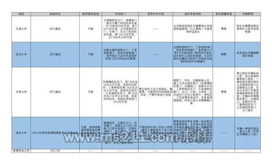 上述兩所大學(xué)作出延期開學(xué)決定的時間較早。1月25日起,香港科技大學(xué)、武漢大學(xué)、復(fù)旦大學(xué)等多所京外重點高校紛紛發(fā)布通知,宣布將延期開學(xué)。同時,部分高校還公布了對于校園進出車輛人員的門禁管理措施。