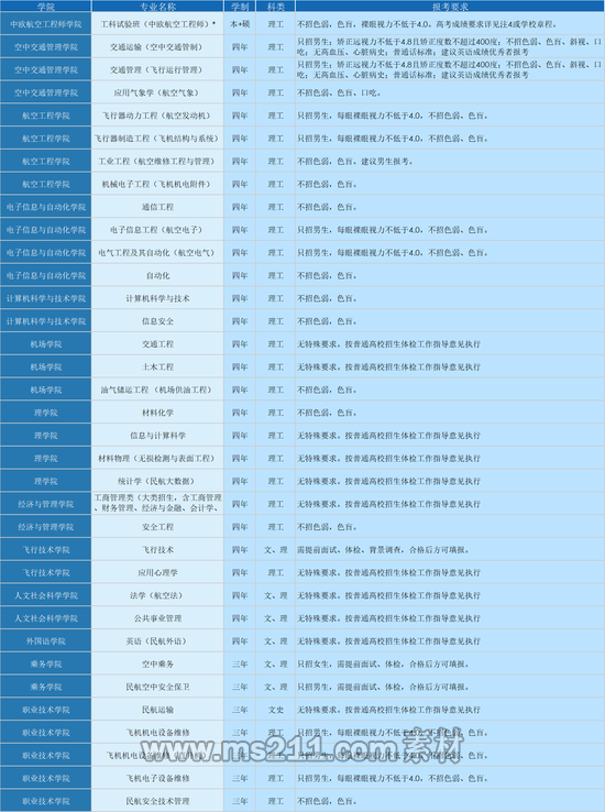 下圖為中國民航大學(xué)本科招生專業(yè)報(bào)考要求。