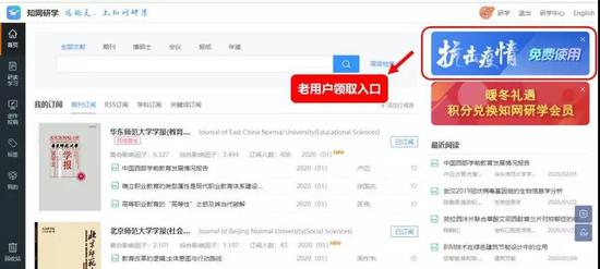 即日起,未返校師生完善個人信息,即可領(lǐng)取免費會員,每日可在線閱讀20篇論文。具體方法如下: