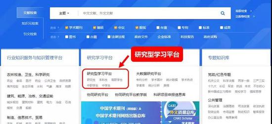 打開知網(wǎng)首頁(cnki.net),點擊紅框內(nèi)“研究型學習平臺”。