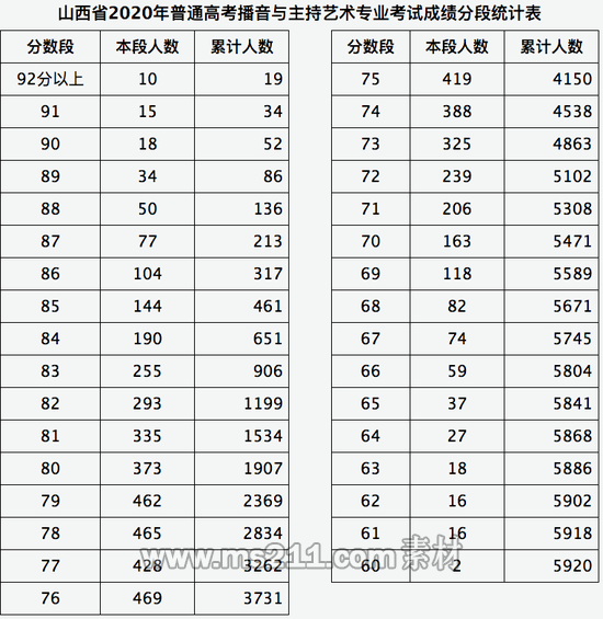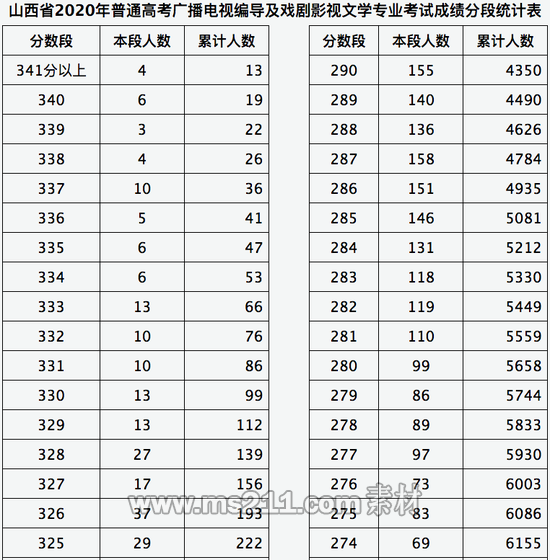 播音與主持藝術(shù)、廣播電視編導(dǎo)及戲劇影視文學(xué)專業(yè)成績分段統(tǒng)計(jì)情況公布
